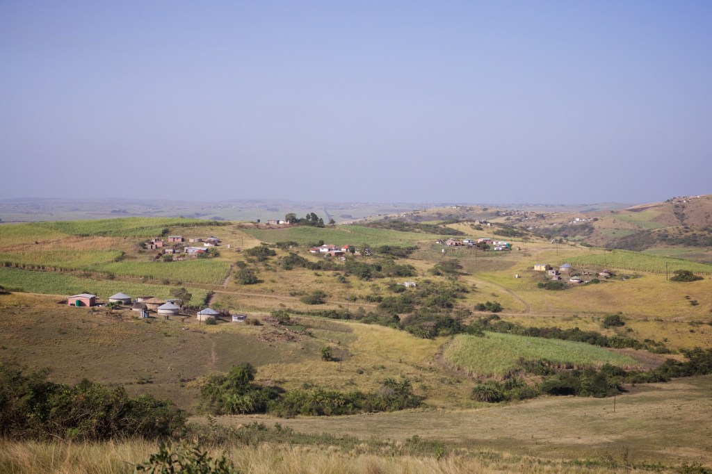 On a beautiful warm winter day in June, we left Amanzimtoti after breakfast and made the almost 2-hour drive to Nyoni, which is about 30 mins past Mandeni. We liaised with Mr. Dlamini in Mandeni and he kindly gave us directions the rest of the way. Mr. Dlamini attends the same church as the Kumalos. We drove through a network of winding, gravel roads to get to Home of Hope. Circular groupings of Zulu-style rondavels dotted the hills on either side of our view from the vehicle. The golden winter grass lined the valleys for miles. We were welcomed jubilantly by Home of Hope and about 40 women from Nosipho’s community. A few of the leaders even sang and danced for us! Across the road, Nosipho and her husband have built a wonderful complex where they live with a beautiful house and other useful buildings.